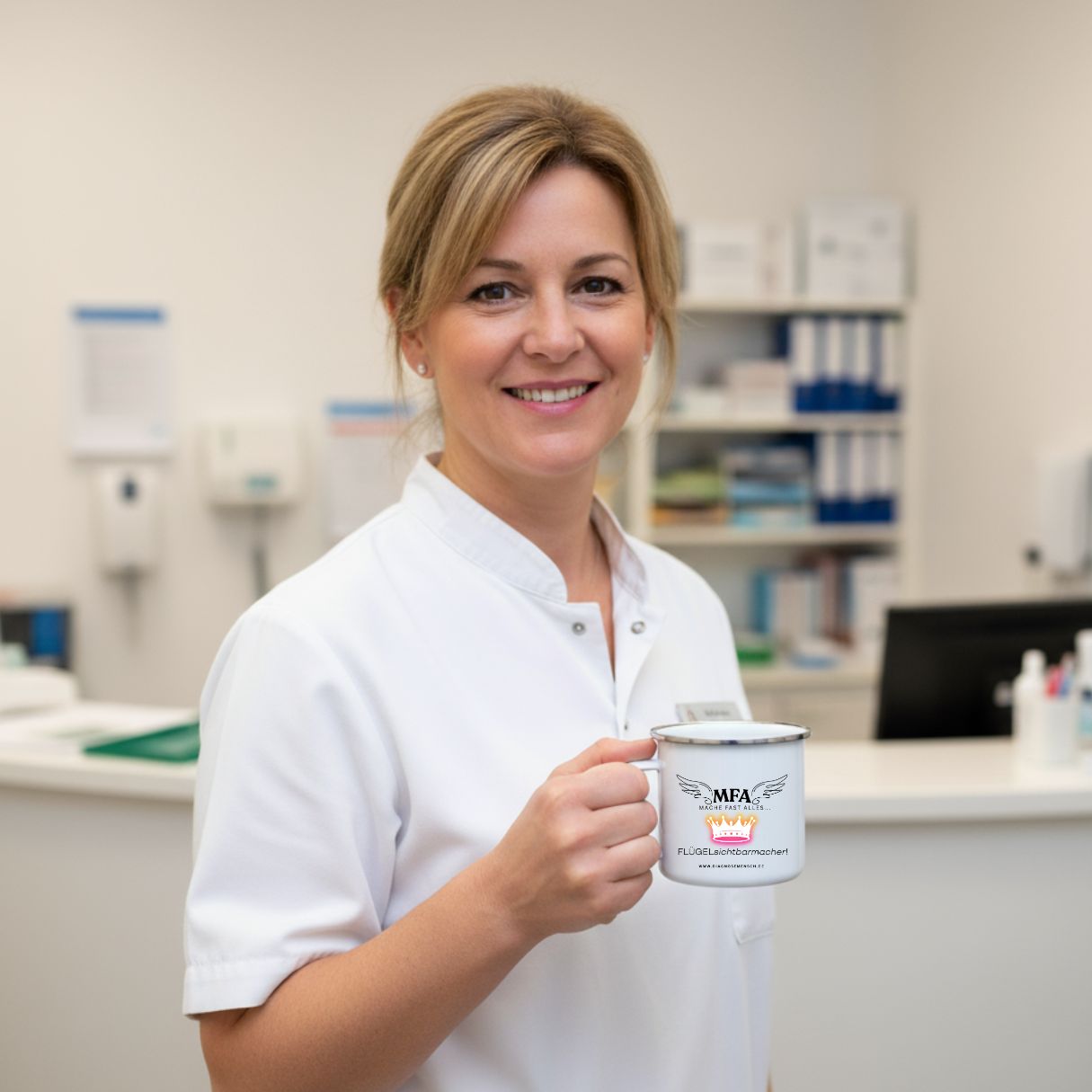 Patienten begleiten, bei Behandlungen assistieren und den gesamten Ablauf am Laufen halten. Kurz gesagt: Sie Machen Fast Alles.Unser liebevoll gestaltetes MFA-Design setzt für sie ein sichtbares Zeichen: "Wie schön, dass es dich gibt!"