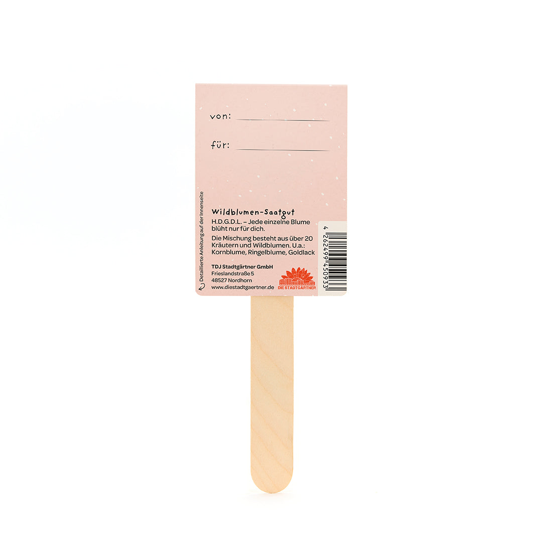 Wenn Liebe Wurzeln schlägt: Gefüllt mit einer bunten Wildblumenmischung, schenkt dieser Gruß nicht nur Farbe, sondern auch Gefühl. Eine kleine Geste, die sagt: Ich denk an dich. Und mit jedem Blütenblatt ein bisschen Liebe mehr.