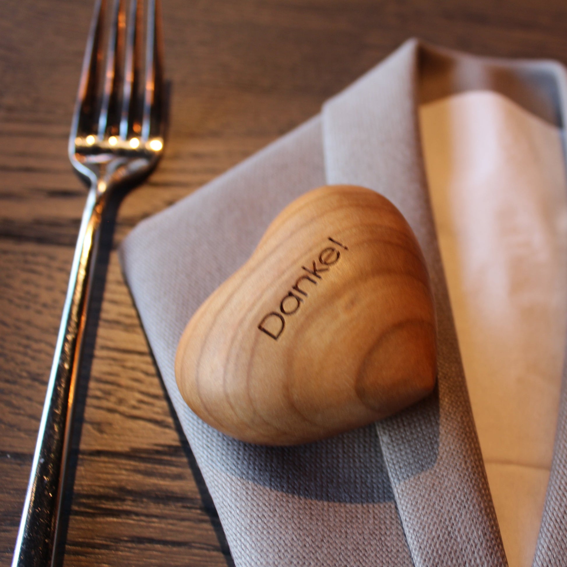 Obstholz, poliert. Jedes Herz ein Unikat in Maserung und Farbe!